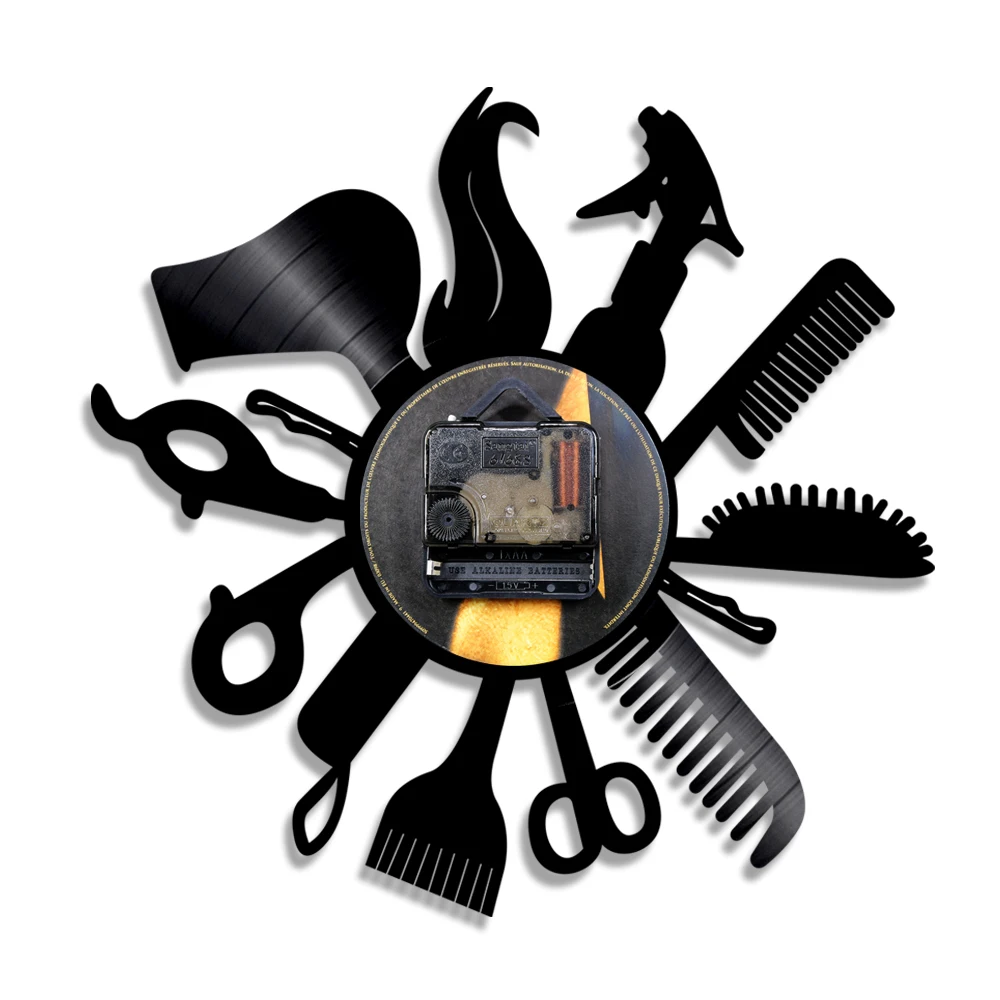Barber Shop Vinyl Record Wall Clock Modern Design Beauty Salon Store Vintage 3D Timepiece Haircut h