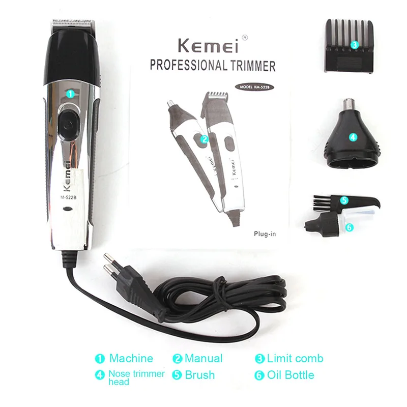 Kemei Electric 2 IN 1 Nose Trimmer Hair Clipper Trimmer Shaver Razor Salon Clipper for Men KM-522B