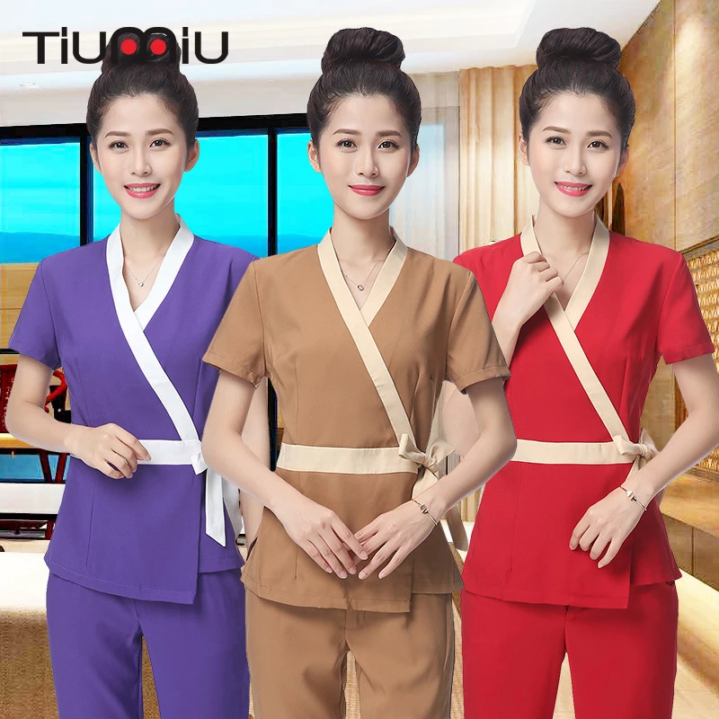 Review New Health Club Work Uniform Hotel Waiter Shirt+Pants Women Short Sleeve Medical Uniform Beauty Sal