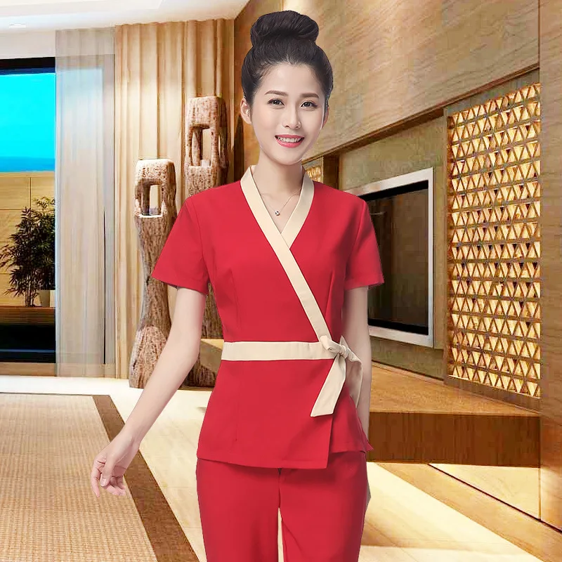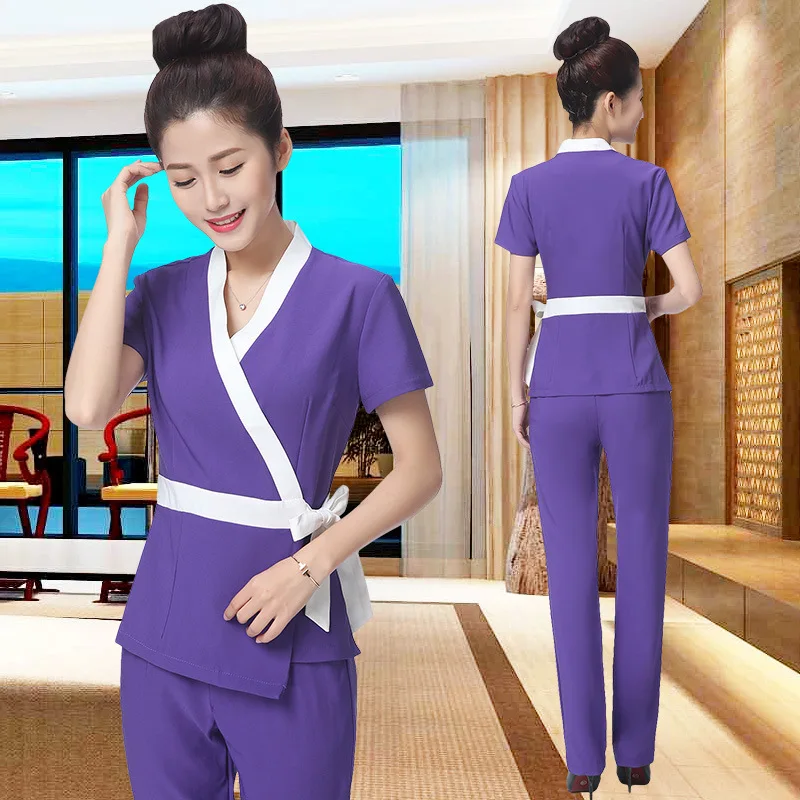 New Health Club Work Uniform Hotel Waiter Shirt+Pants Women Short Sleeve Medical Uniform Beauty Sal