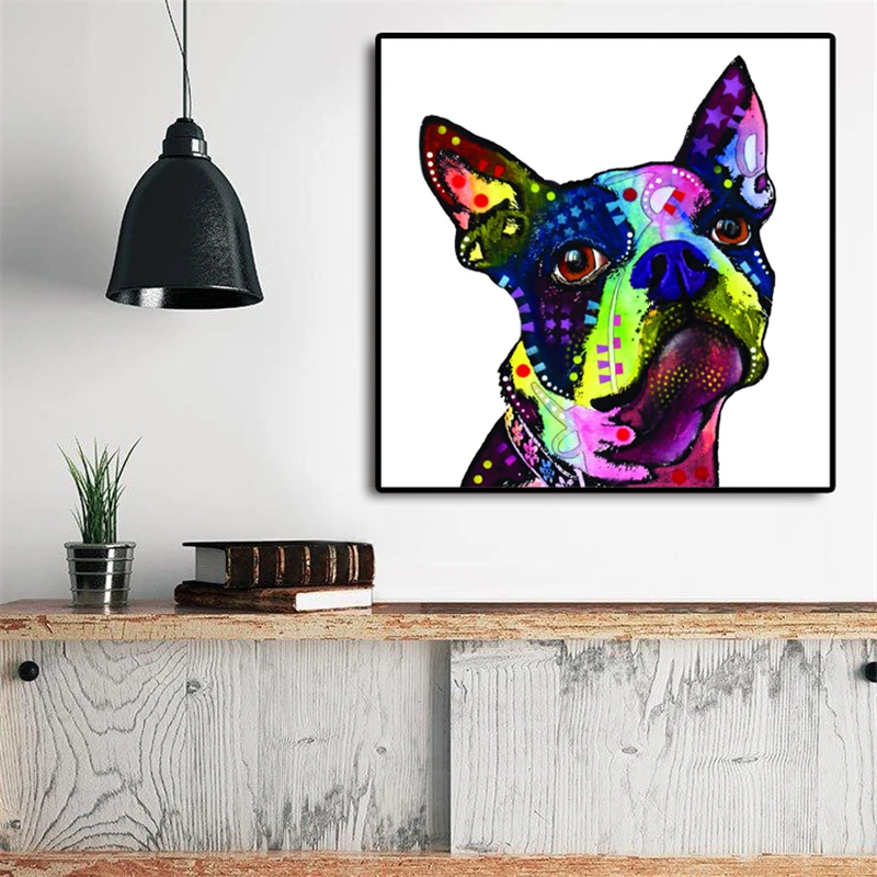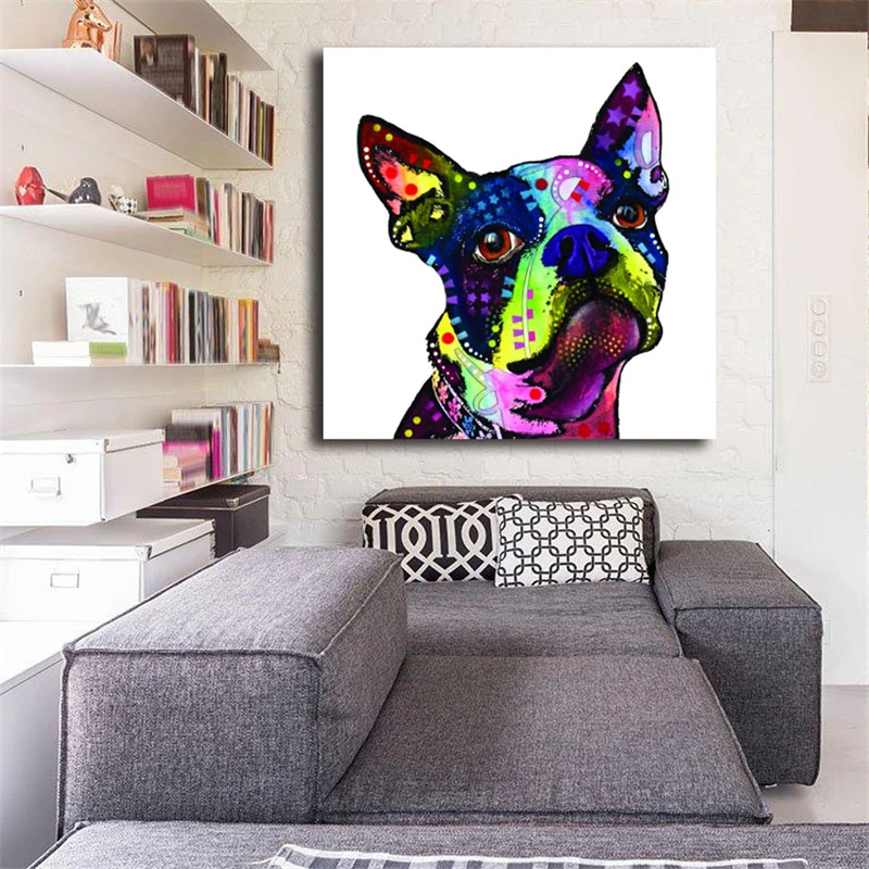 Boston Terrier By Dean Russo Canvas Painting Print Living Room Home Decor Modern Wall Art Oil Paint