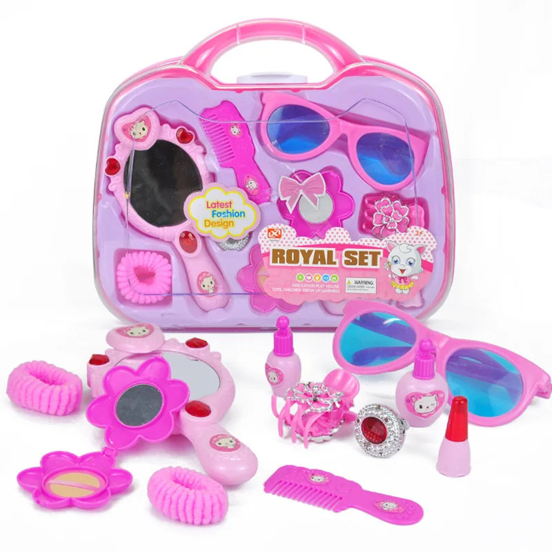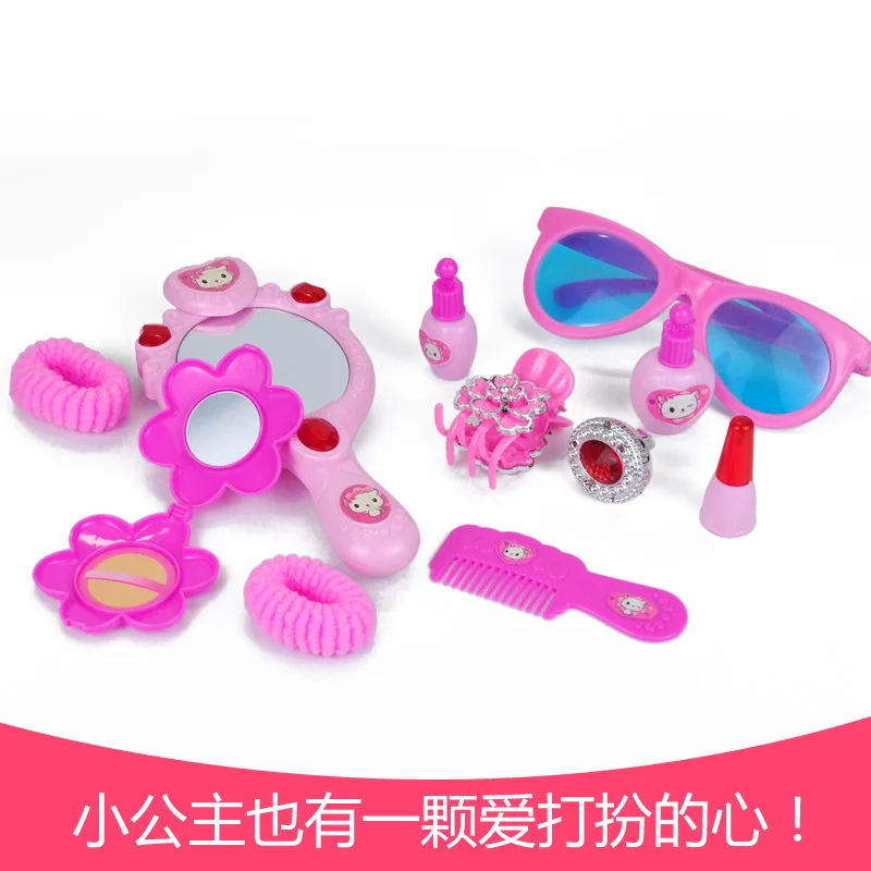 ORIGINAL 11pcs/set Dressing Play Toys Pink Plastic Beauty Salon Jewelry Box Toy Set For Baby Gift Girls Pret