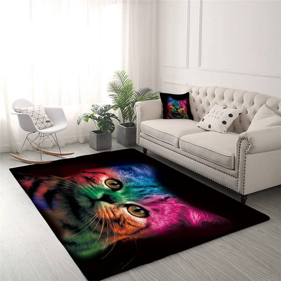 BlessLiving Cat Rugs For Bedroom Cute Colorful Cat 3D Carpet Bold Color Black Floor Carpet Animal C