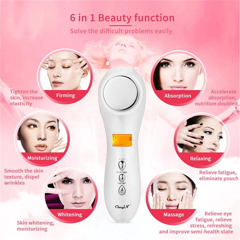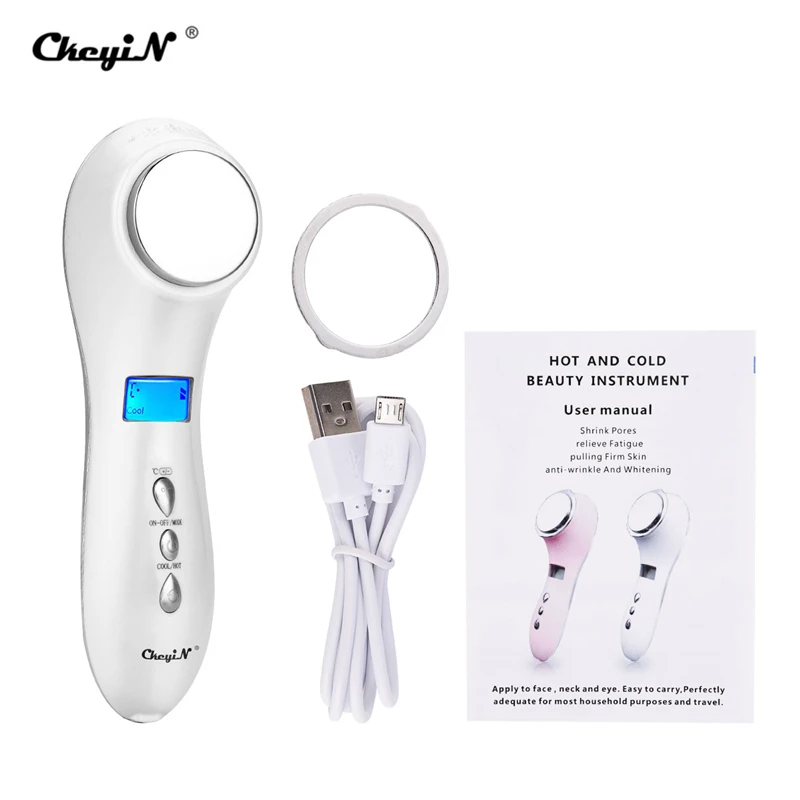 CkeyiN Ultrasonic Cryotherapy LED Hot Cold Hammer Facial Lifting Vibration Massager Face Body Spa B