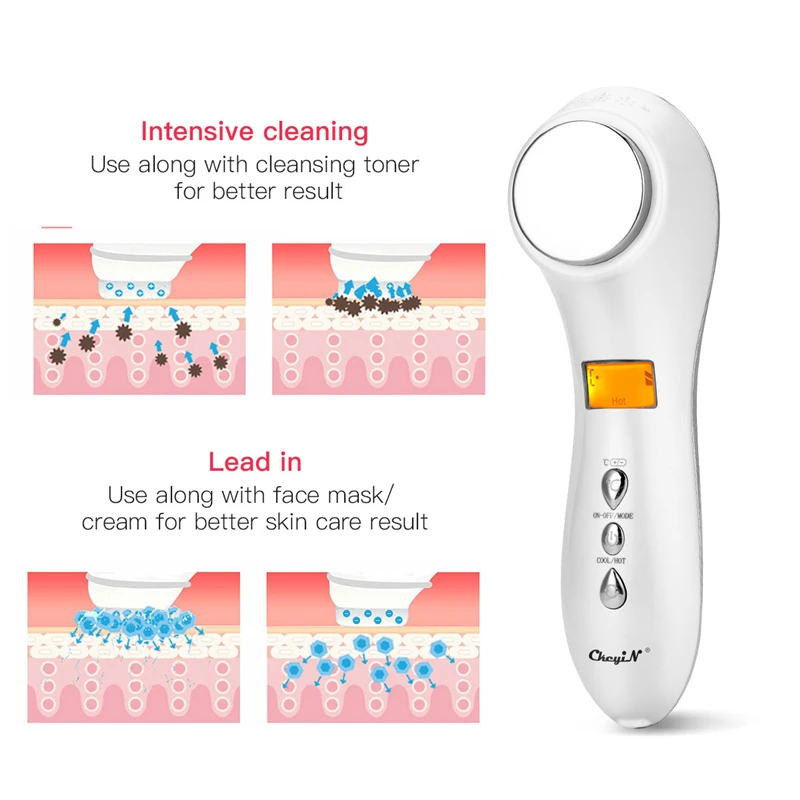 REVIEW TOP SELLER CkeyiN Ultrasonic Cryotherapy LED Hot Cold Hammer Facial Lifting Vibration Massager Face Body Spa B